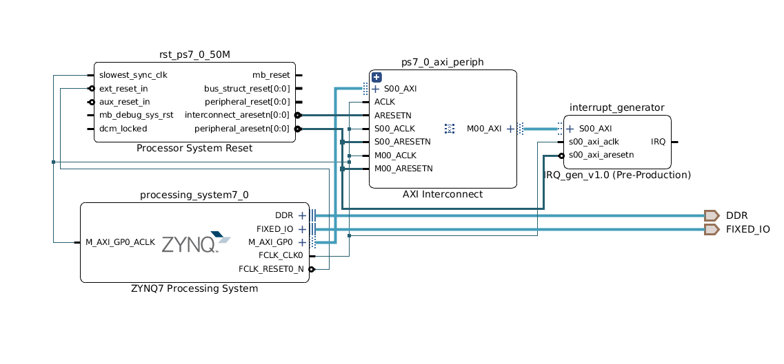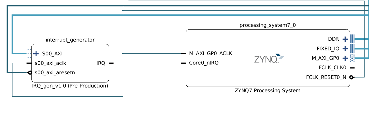 Shown Below is a block Design with a single IP which generates interrupts on the IRQ line.
