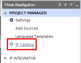 In the Project Manager/Flow Navigator window in Vivado, click on the IP Catalog to view the available IP Blocks. Expand “FPGA Features and Design” and select the Clocking Wizard from the Clocking pull-down.